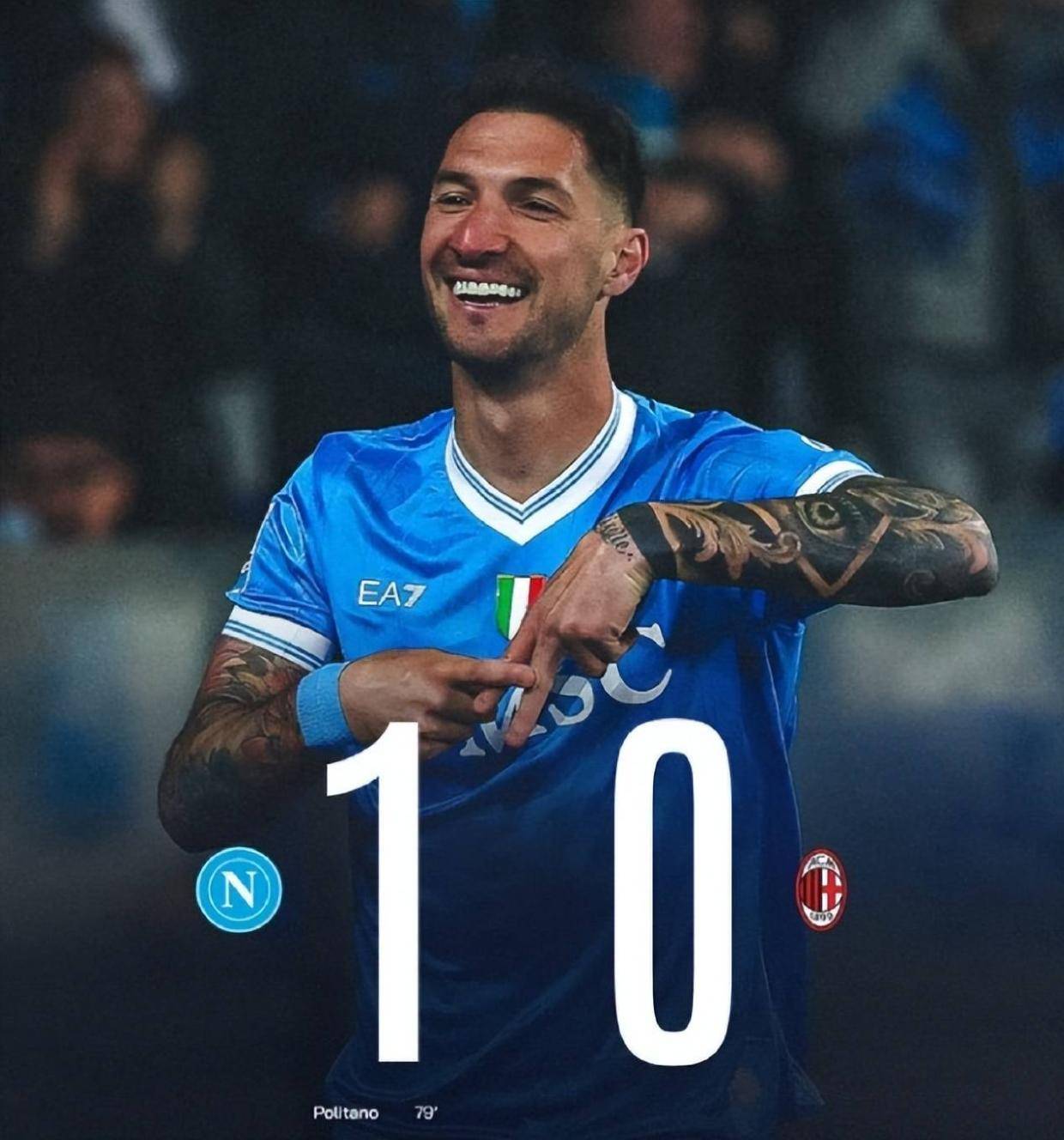 意甲第 31 轮迎来争冠焦点战,那不勒斯1比0小胜AC米兰,打进唯一进球的是替补登场的波利塔诺,这位关键先生在下半场第79分钟才打进制胜进球,也是险胜对手。这场关键胜利让那不勒斯积分升至65分,反超对手2分跃居联赛次席,AC米兰则积63分跌至第三,与榜首国米差距拉大至9分,本赛季争冠希望基本破灭,所以此役也是极具悲情色彩的。